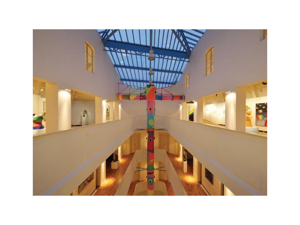 Barevná pohlednice s motivem výstavních sálů Galerie moderního umění v Hradci Králové. Pohled je ze sběratelské série GMU HK.