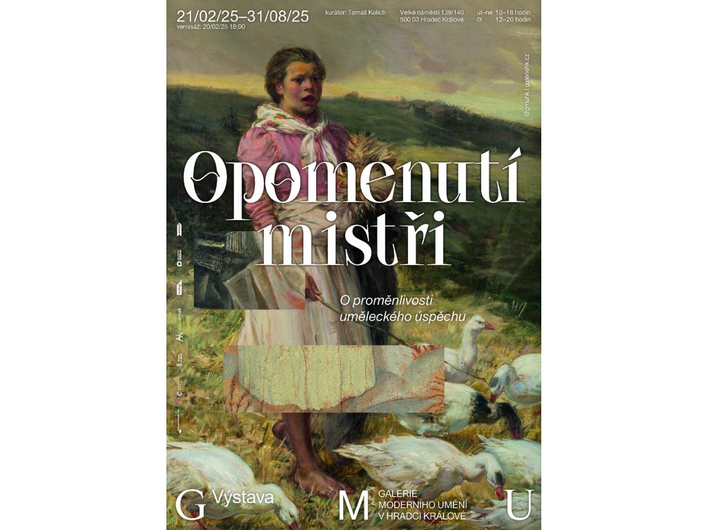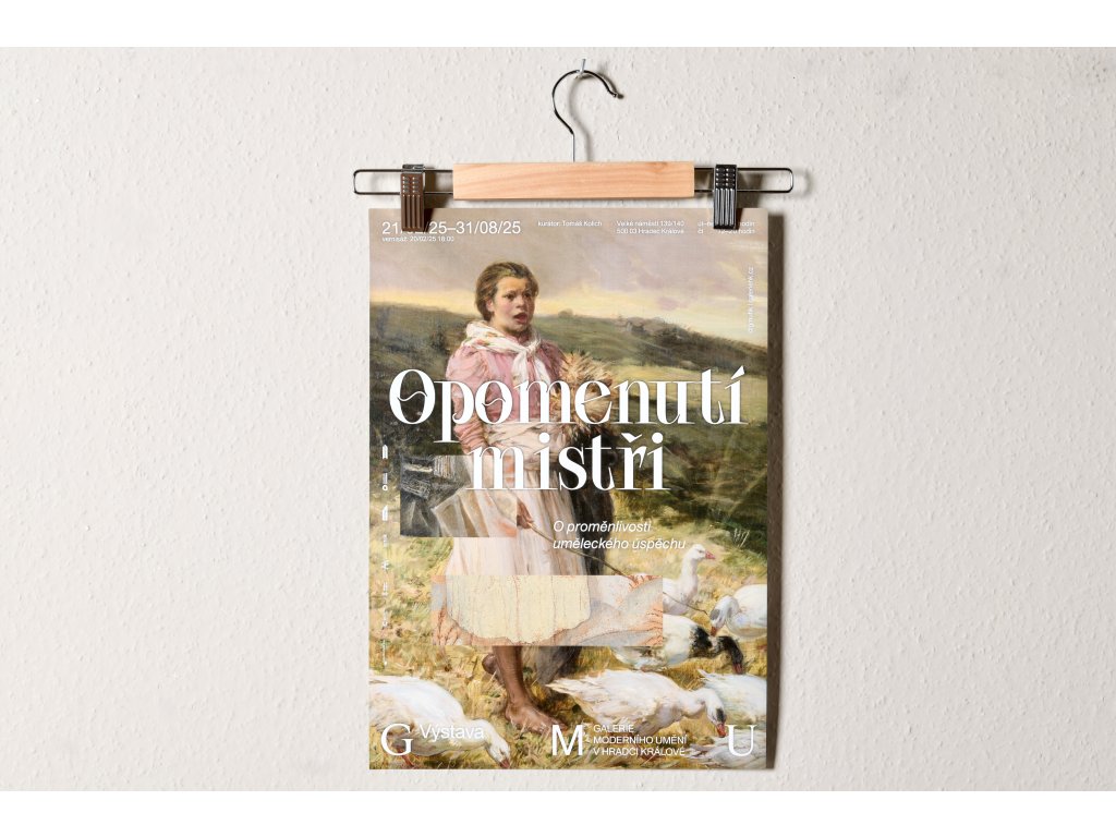 Plakát doprovázející výstavu Opomenutí mistři, která prezentuje tvorbu deseti malířských osobností, které v hlasování návštěvníků na výstavě Hledá se mistrovské dílo (08/10/2023–26/05/2024) skončily jako poslední, a zároveň jsou dějinami umění dlouhodobě opomíjené. V posledních desetiletích jim nebyla věnována žádná odborná výstava ani monografie (s výjimkou Antonína Pelce).