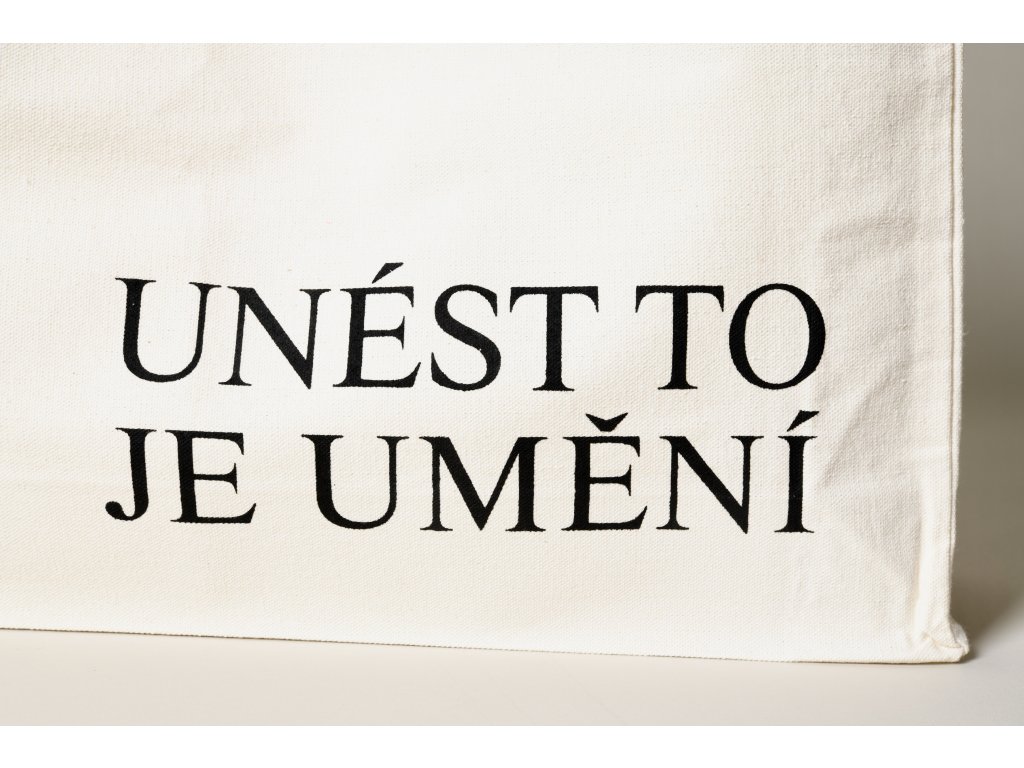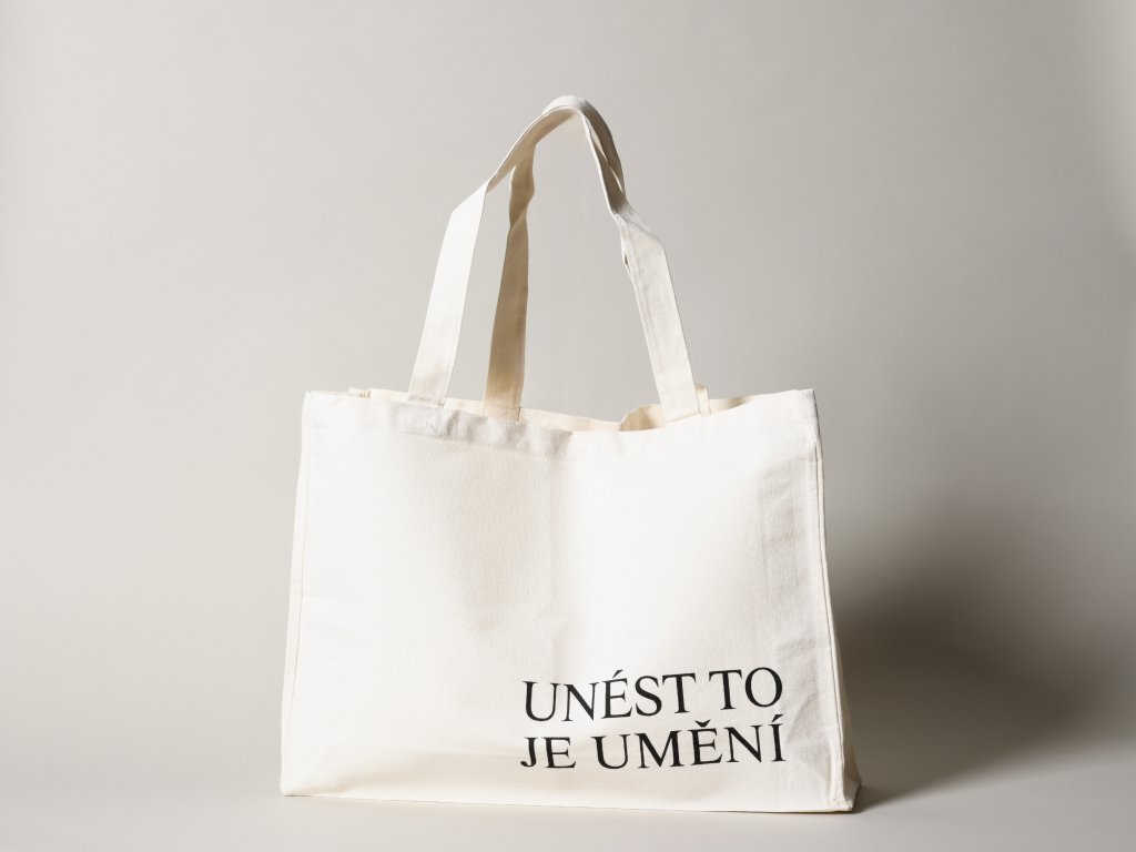 Limitovaná edice shopper plátěných tašek s motivem "Unést to je umění", které metodou sítotisku potiskla Anna Štysová ve své dílně Sítotisk u báby se zázemím v Hradci Králové.
