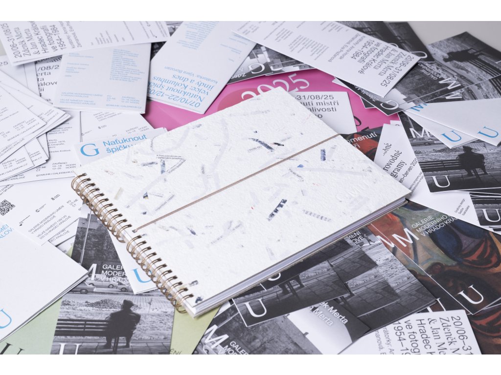 Skicák dává druhý život neaktuálním tiskovinám GMU, které by jinak skončily nevyužité. Na výrobu obalu byly využity leaflety, jež běžně potkáváte v našich výstavách. Uvnitř skicáku s kroužkovou vazbou a gumičkou najdete celkem 30 listů, vnitřní kapsu a poutko na tužku.